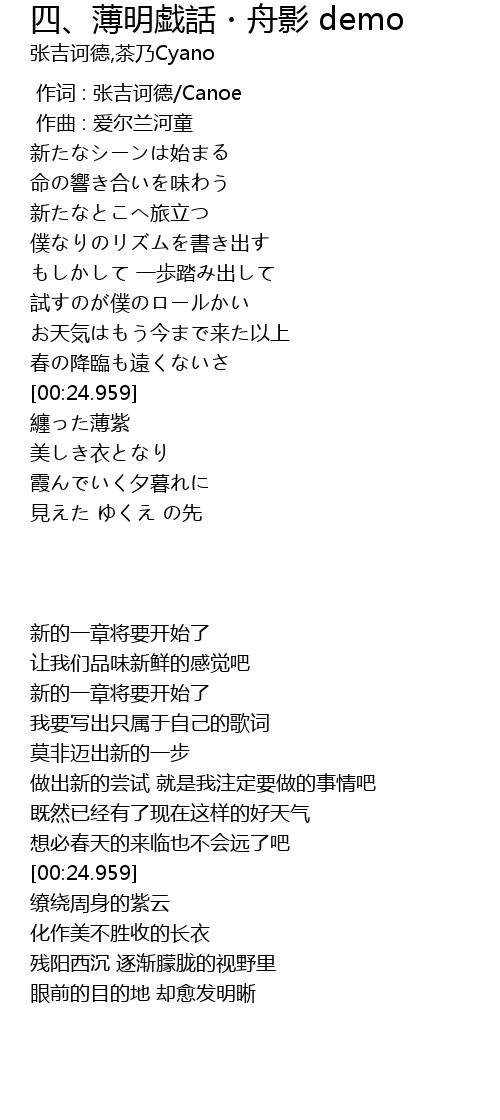 | [00:00.000] | zuo ci : zhang ji he de Canoe |