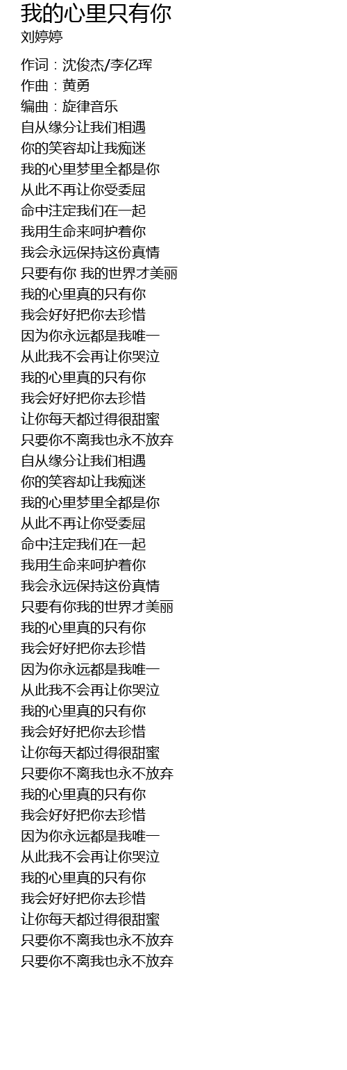 | [00:57.89] | wǒ de xīn lǐ zhēn de zhǐ yǒu nǐ |