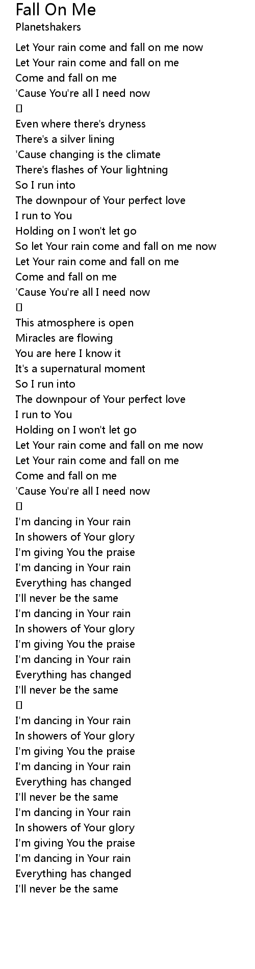 | [01:15.90] | So let Your rain come and fall on me now |