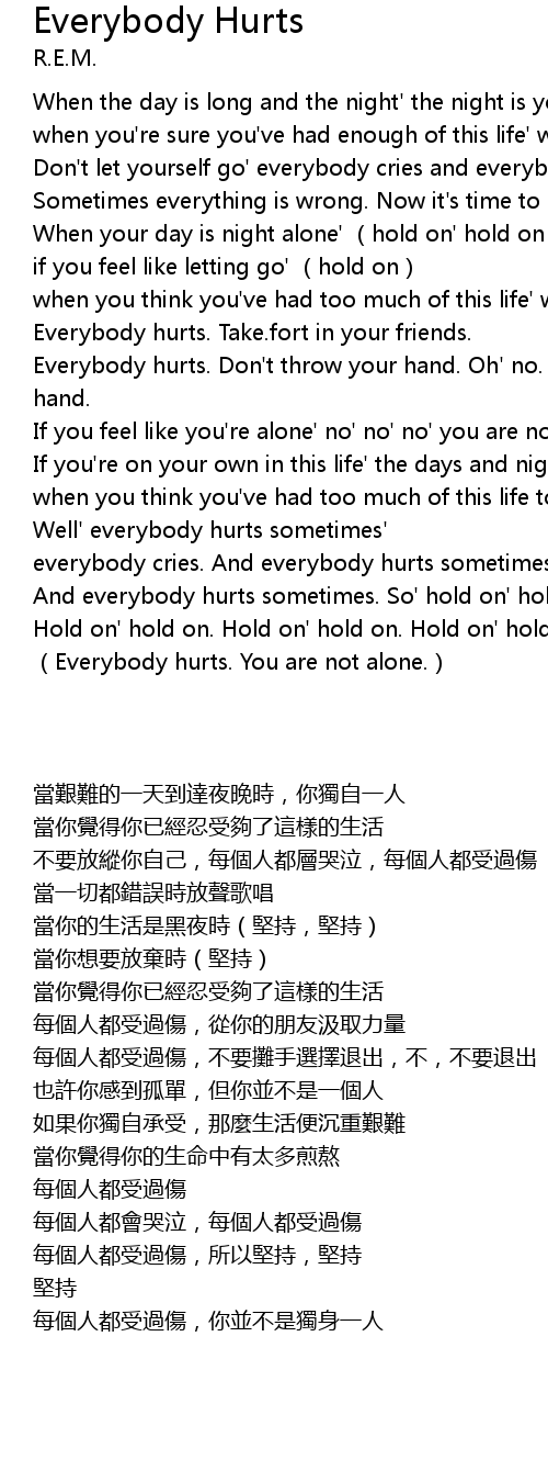 | [04:35.000] | Everybody hurts. You are not alone. |