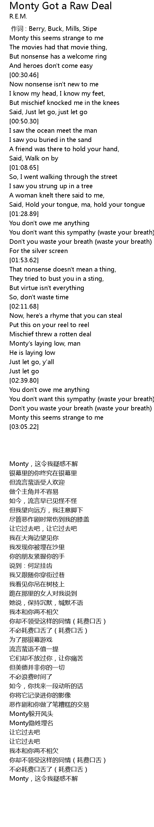 | [00:00.00] | zuò cí : Berry, Buck, Mills, Stipe |