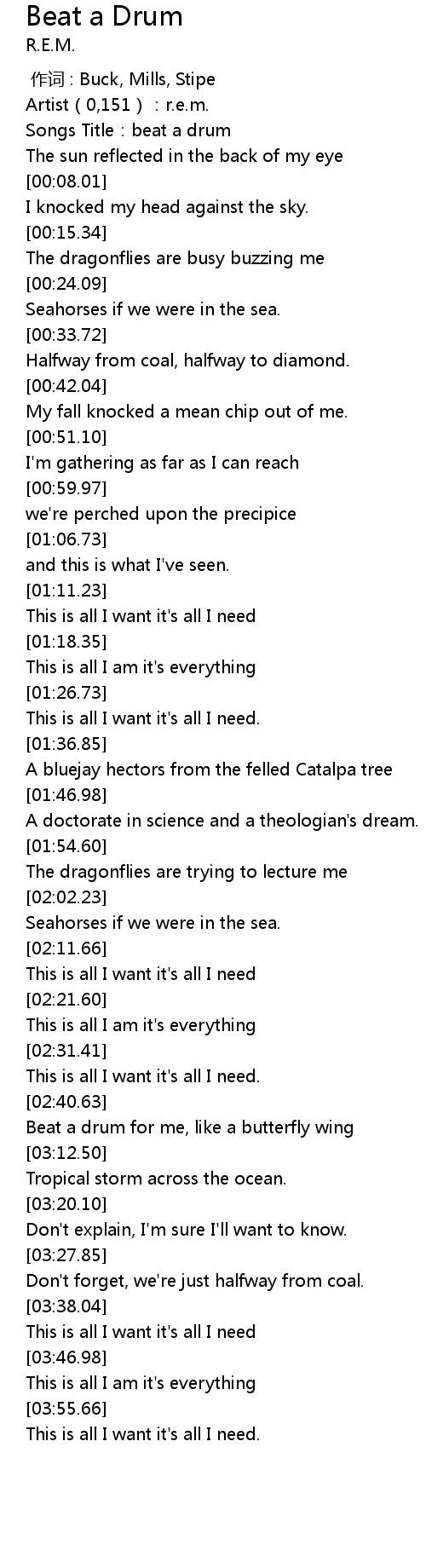| [00:00.00] | 作词 : Buck, Mills, Stipe |
