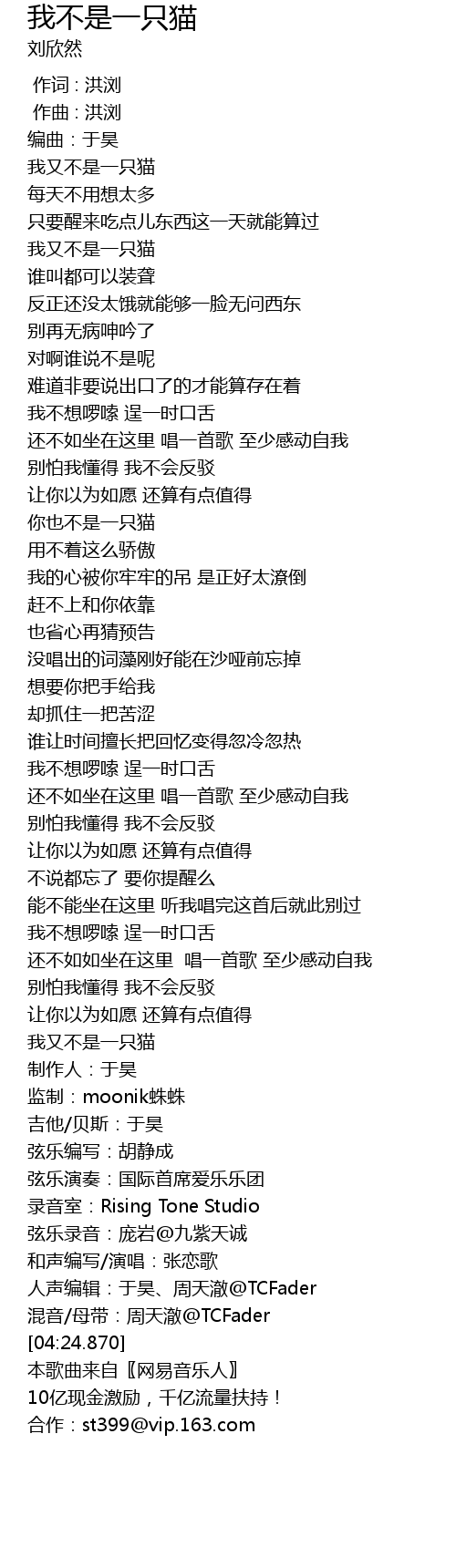 | [04:11.429] | wǒ yòu bú shì yì zhī māo |