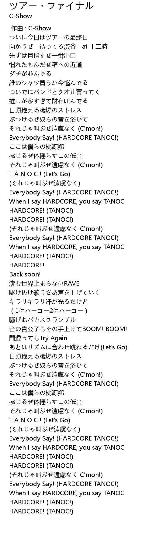 | [02:17.09] | Everybody Say! HARDCORE TANOC! |