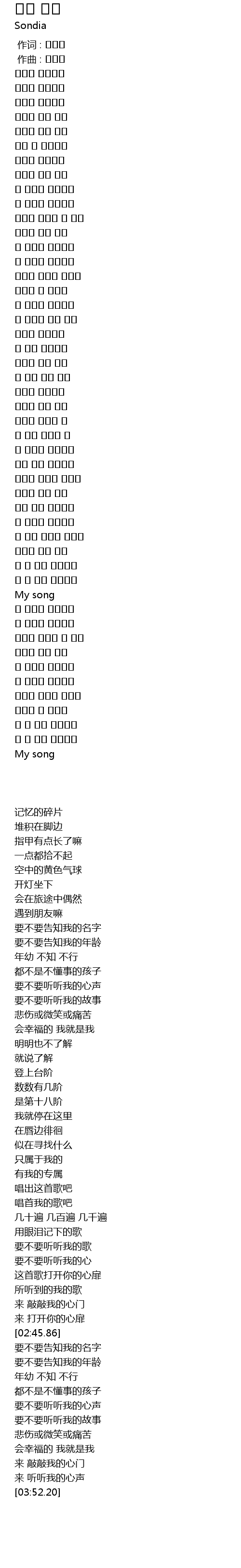 | [02:23.37] | 나의 노랠 들려줄게 |