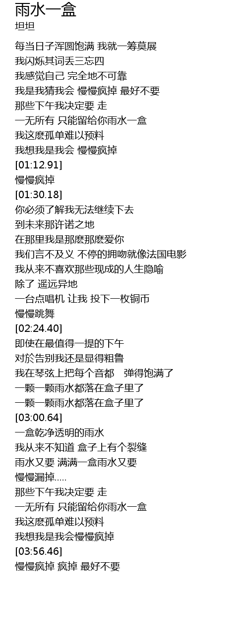 | [03:11.60] | 一盒乾净透明的雨水 |