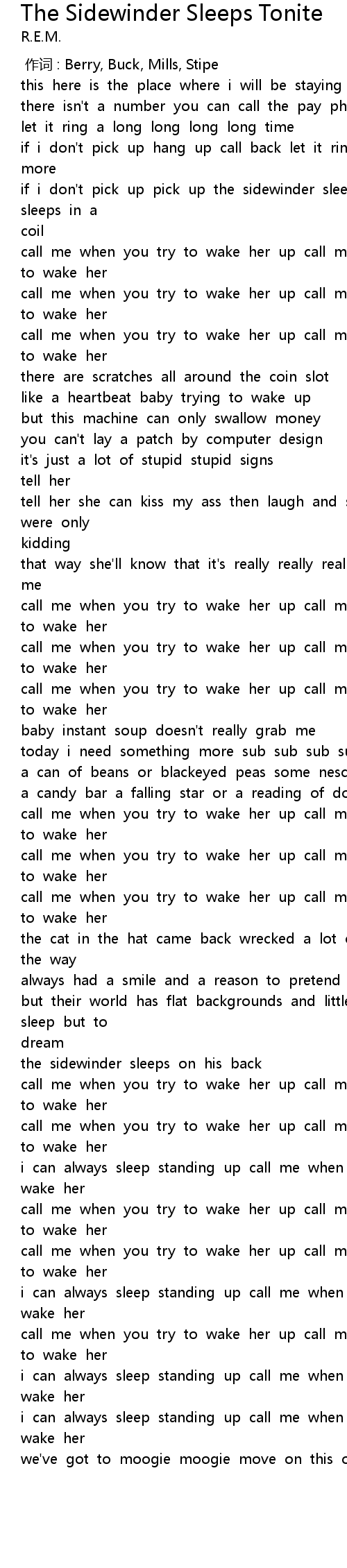 | [00:47.22] | if i don' t pick up pick up the sidewinder sleeps sleeps sleeps in a |