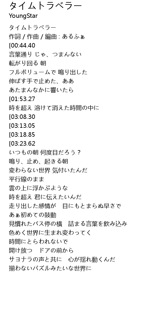 | [00:00.41] | タイムトラベラー |