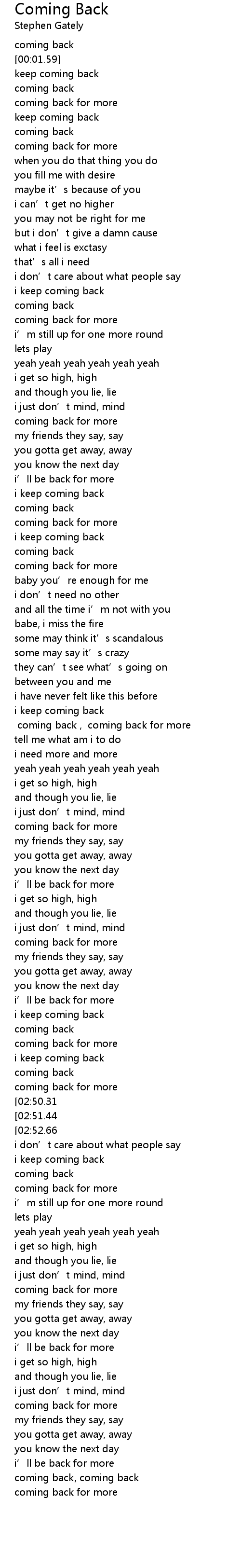 | [02:55.07][02:50.31] | i keep coming back |