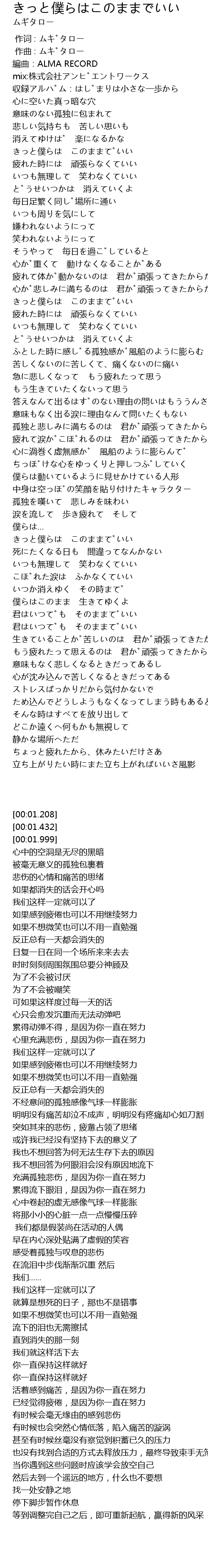 | [01:45.053] | きっと僕らは このままでいい |