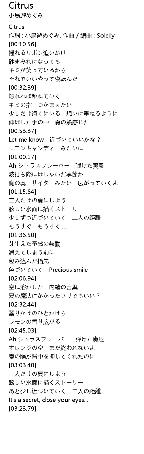 | [02:48.58] | Ah シトラスフレーバー 弾けた爽風 |