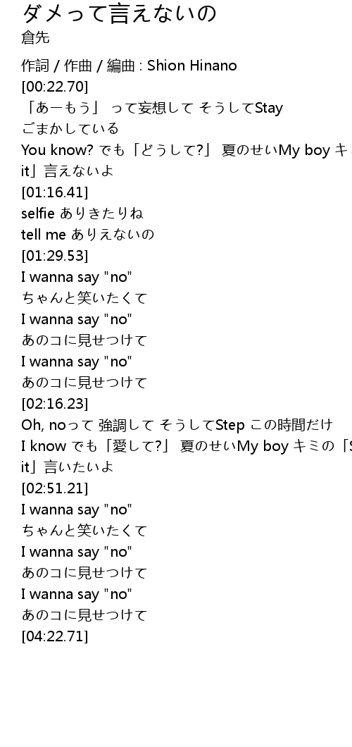| [02:33.10] | Oh, noって 強調して そうしてStep この時間だけ |