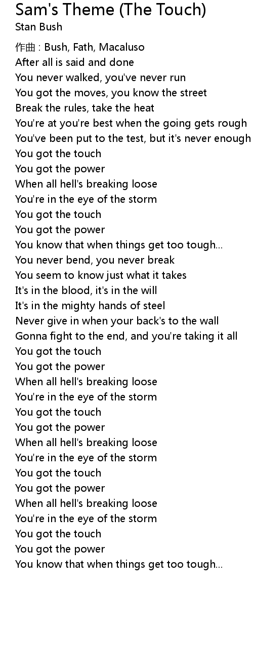| Song | Sam's Theme (The Touch) |