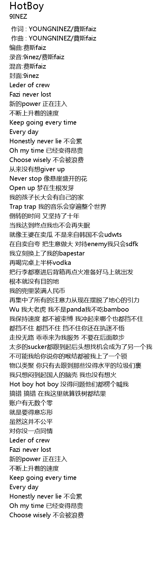 | [00:00.000] | 作词 : YOUNGNINEZ/費斯faiz |