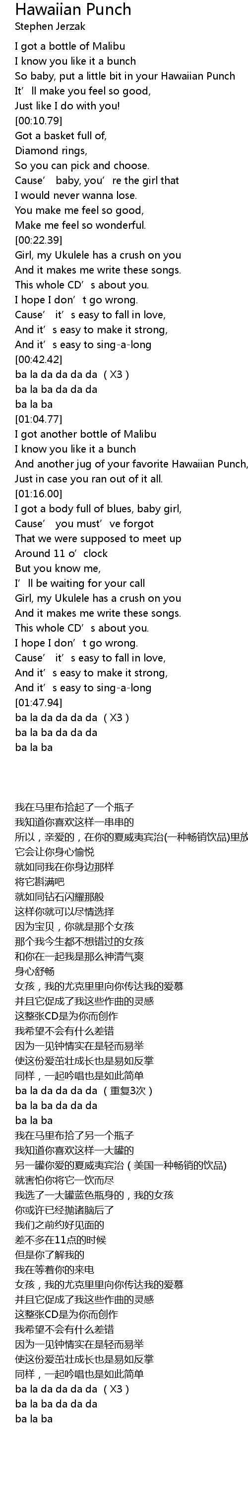 | [00:03.54] | So baby, put a little bit in your Hawaiian Punch |