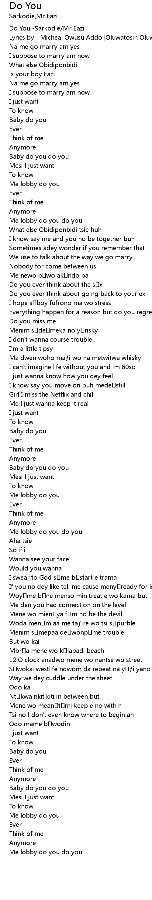 | [00:00.00] | Do You Sarkodie Mr Eazi |