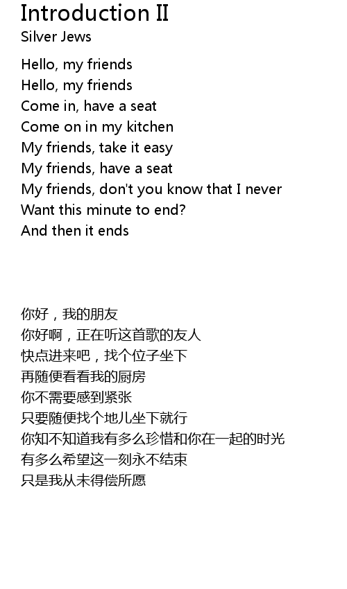 | [00:06.35] | Hello, my friends |