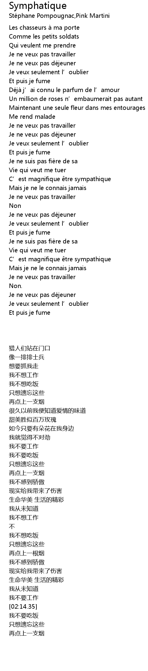 | [02:15.00] | Je ne veux pas dé jeuner |