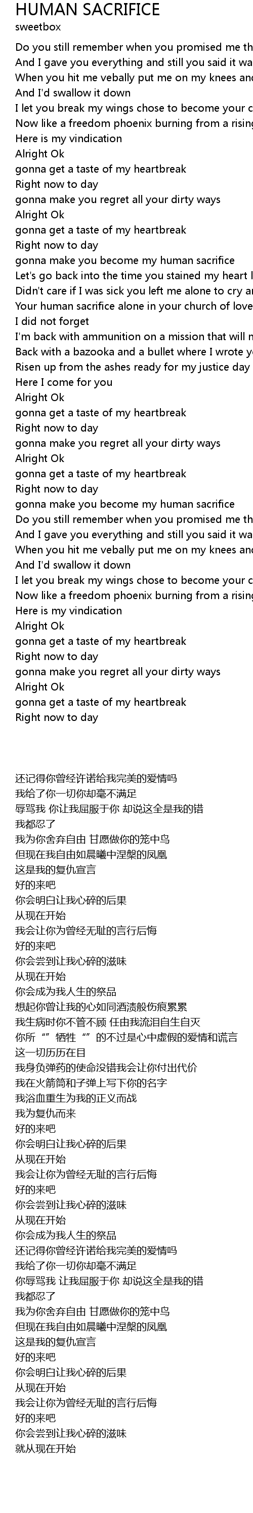 | [01:14.13] | Your human sacrifice alone in your church of love and lies |