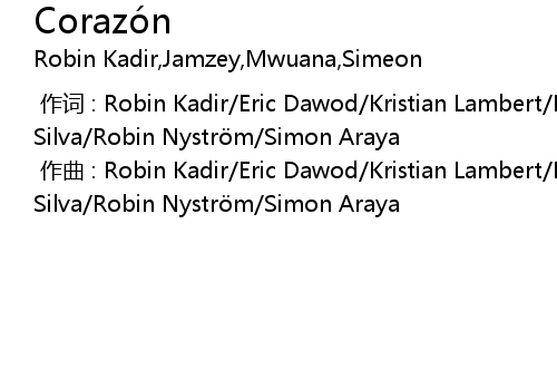 | [00:00.00-1] | zuò qǔ : Robin Kadir Eric Dawod Kristian Lambert Patricio Silva Robin Nystr m Simon Araya |