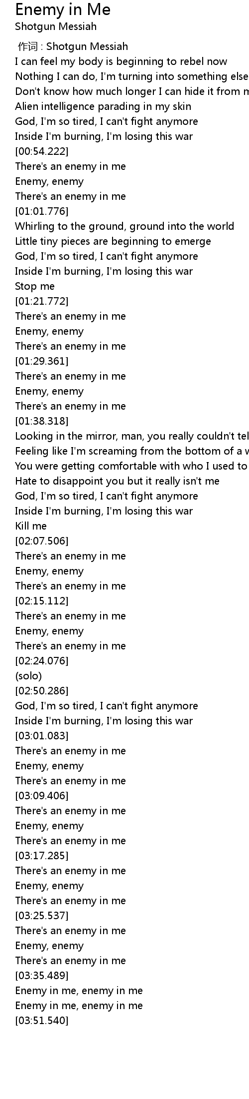 | [02:56.396] | Inside I'm burning, I'm losing this war |