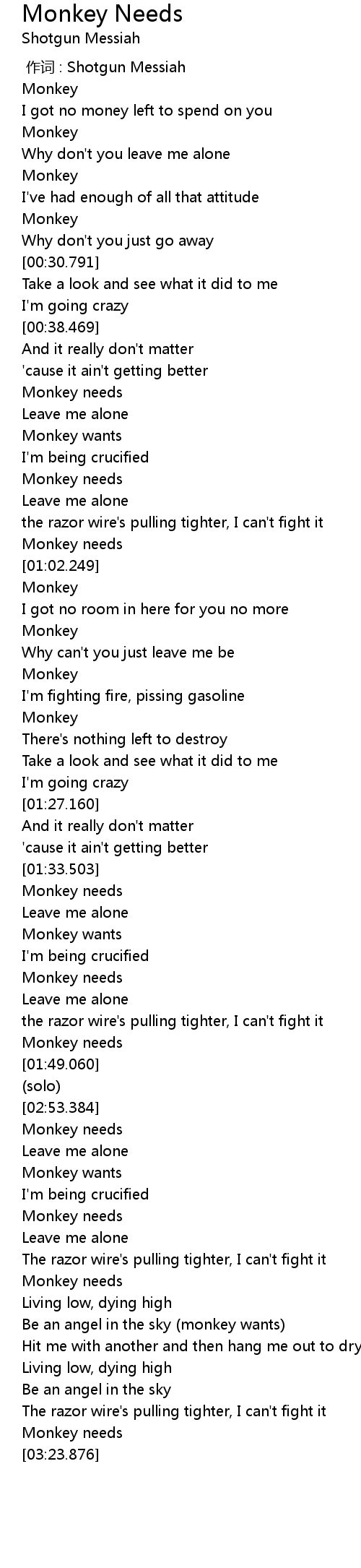 | [03:12.109] | Hit me with another and then hang me out to dry monkey needs |