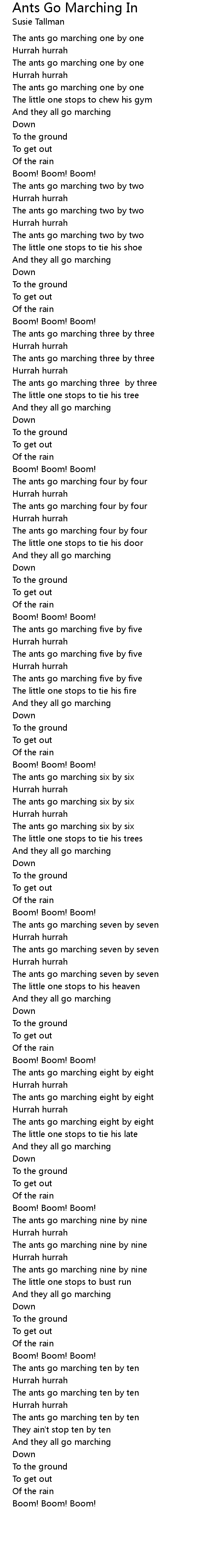 The ants go marching ten by ten |
