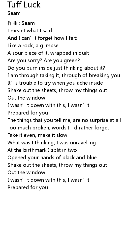 | Song | Tuff Luck |