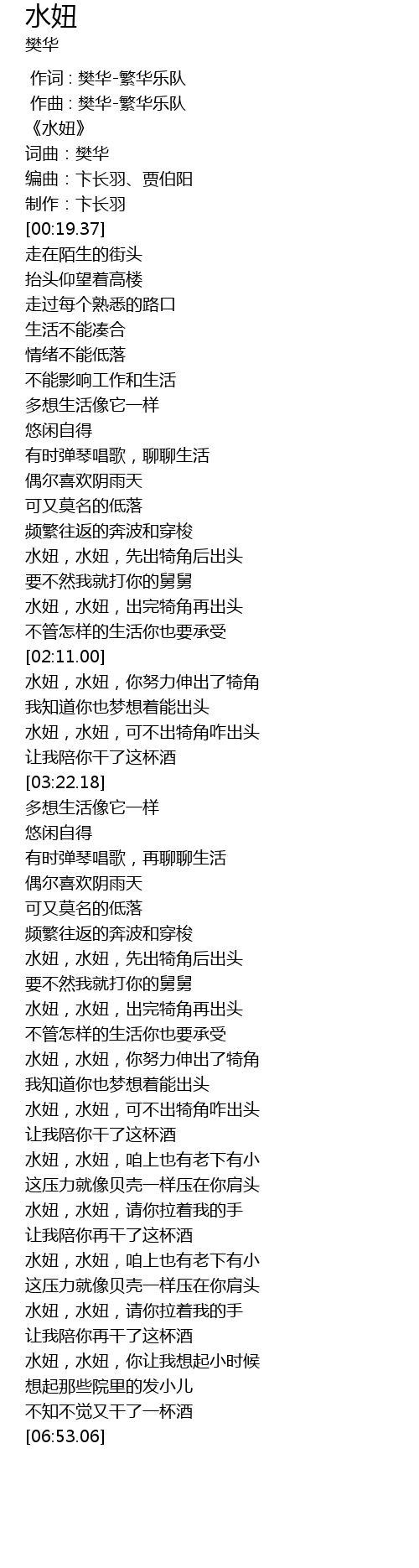 | [06:20.23] | 水妞,水妞,你让我想起小时候 |