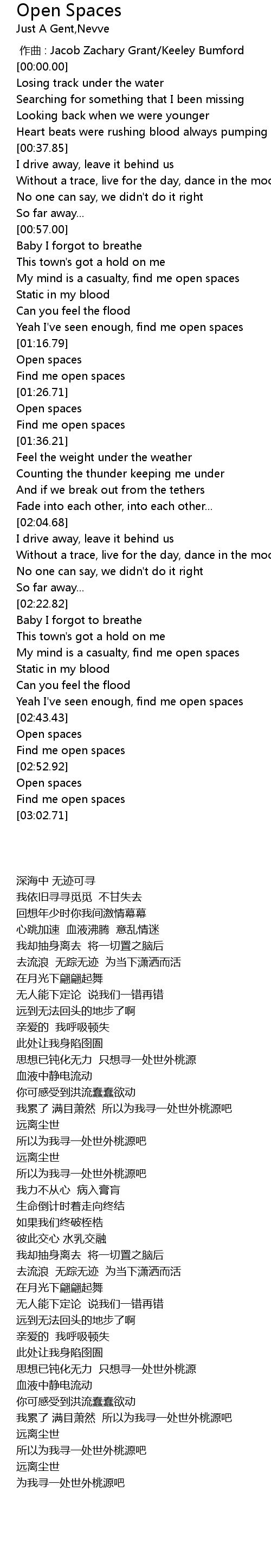 | [02:38.79] | Yeah I' ve seen enough, find me open spaces |