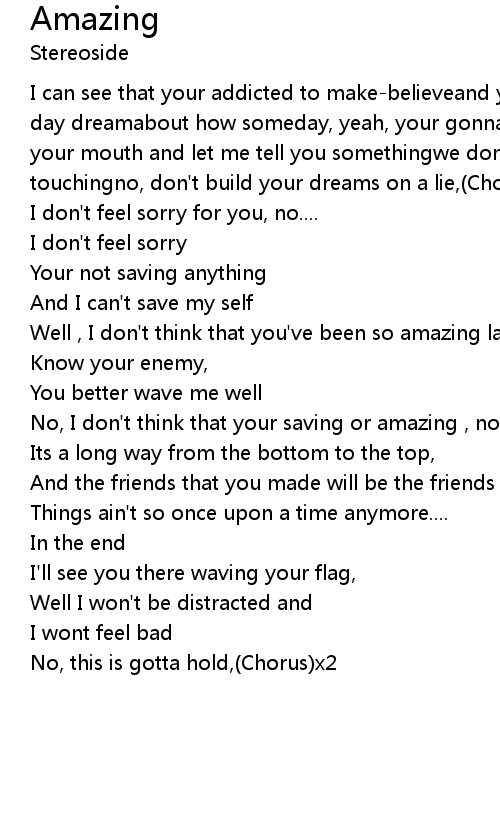 I can see that your addicted to make-believeand you just lay around all day and day dreamabout how someday, yeah, your gonna change the worldwell, just close your mouth and let me tell you somethingwe don't mean nothing , if you keep on touchingno, don't build your dreams on a lie,(Chorus) |
