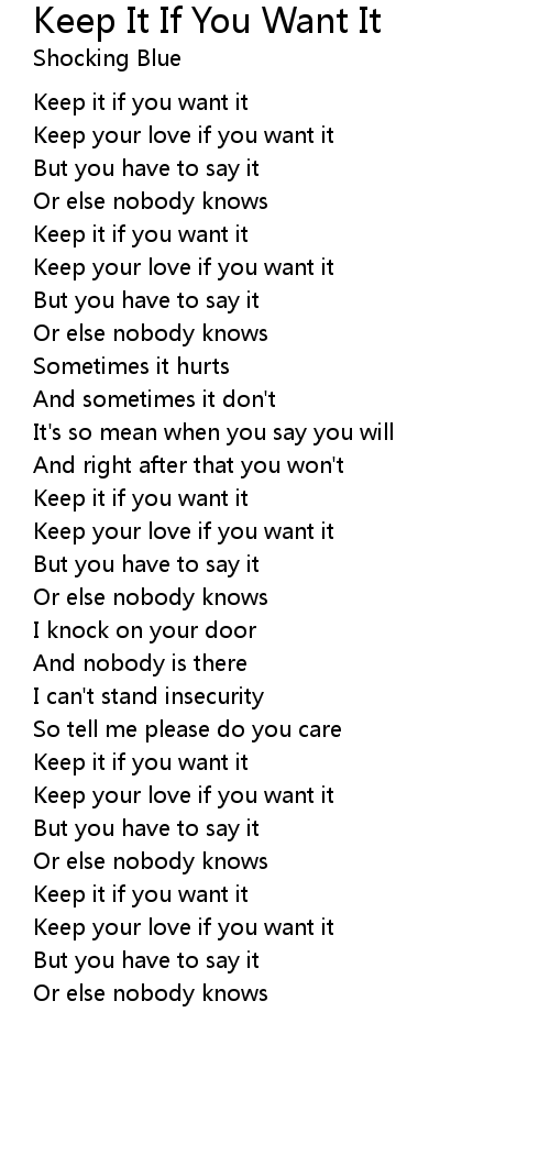 Keep It If You Want It Lyrics