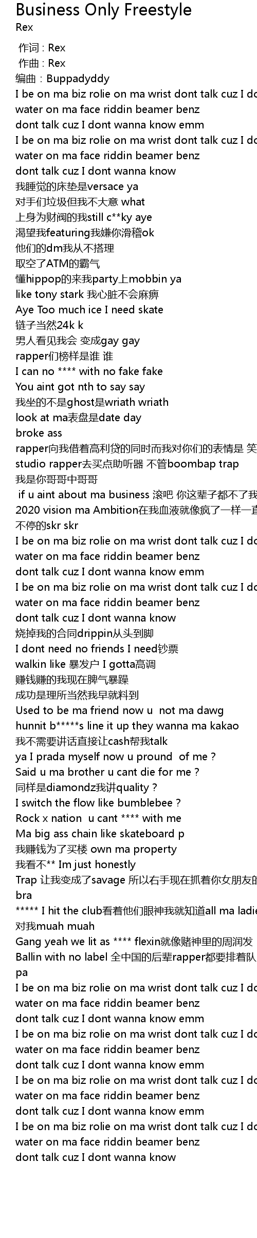 | [00:54.72] | broke ass rapper向我借着高利贷的同时而我对你们的表情是 笑呵呵 |