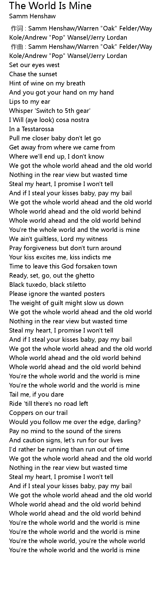 | [02:44.559] | You' re the whole world, you' re the whole world |
