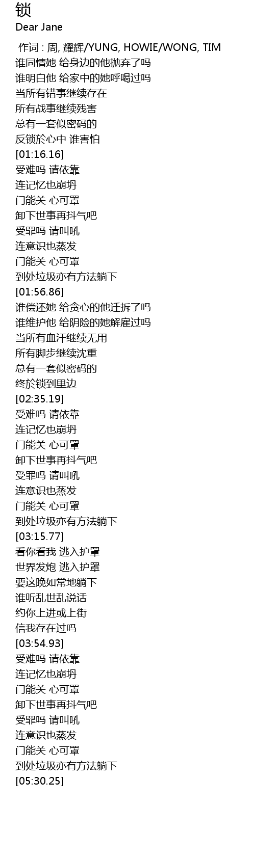 | [00:00.00] | 作词 : 周, 耀辉/YUNG, HOWIE/WONG, TIM |