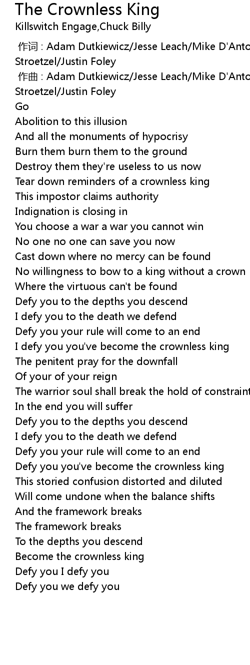 | [01:58.396] | Defy you you' ve become the crownless king |