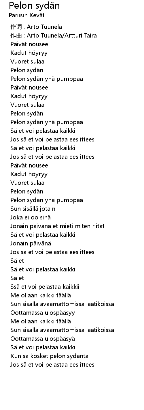 | [00:20.186] | Pelon syd n yh pumppaa |