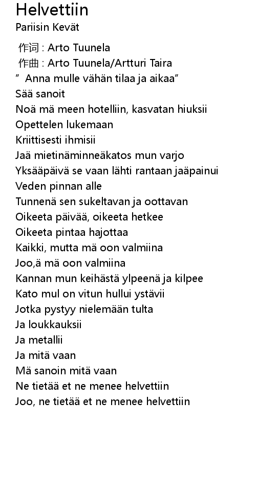 | [00:00.00] | zuò cí : Arto Tuunela |