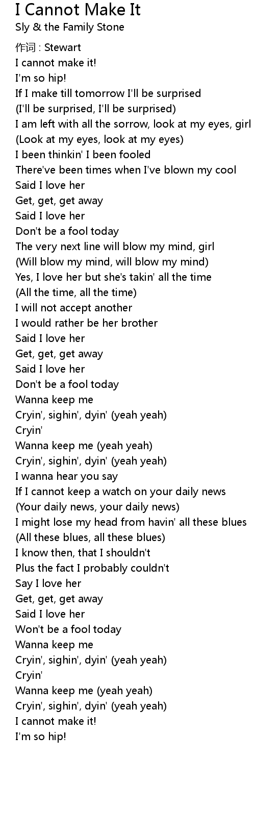 | Song | I Cannot Make It |