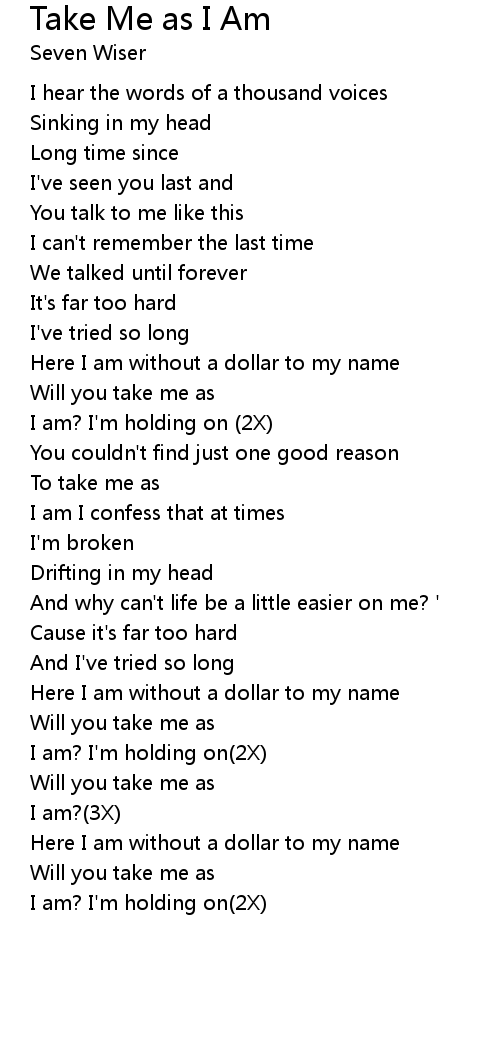 Take Me as I Am Lyrics