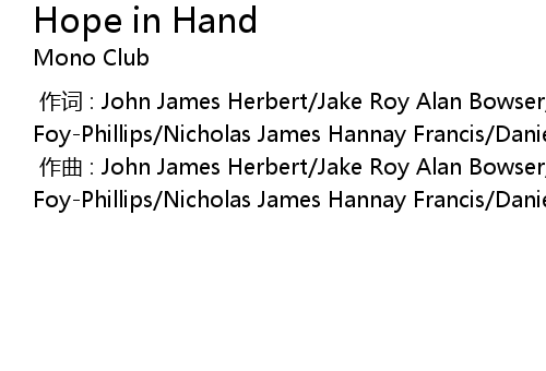 | [00:00.00-1] | zuò qǔ : John James Herbert Jake Roy Alan Bowser Lyla FoyPhillips Nicholas James Hannay Francis Daniel Edward Bell Kyle Luke Hall |