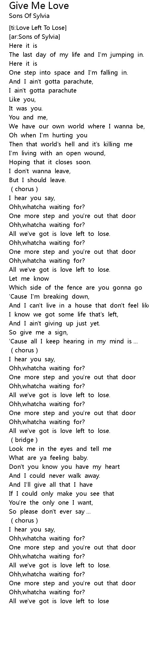 | [01:40.30] | And I can' t live in a house that don' t feel like a home. |