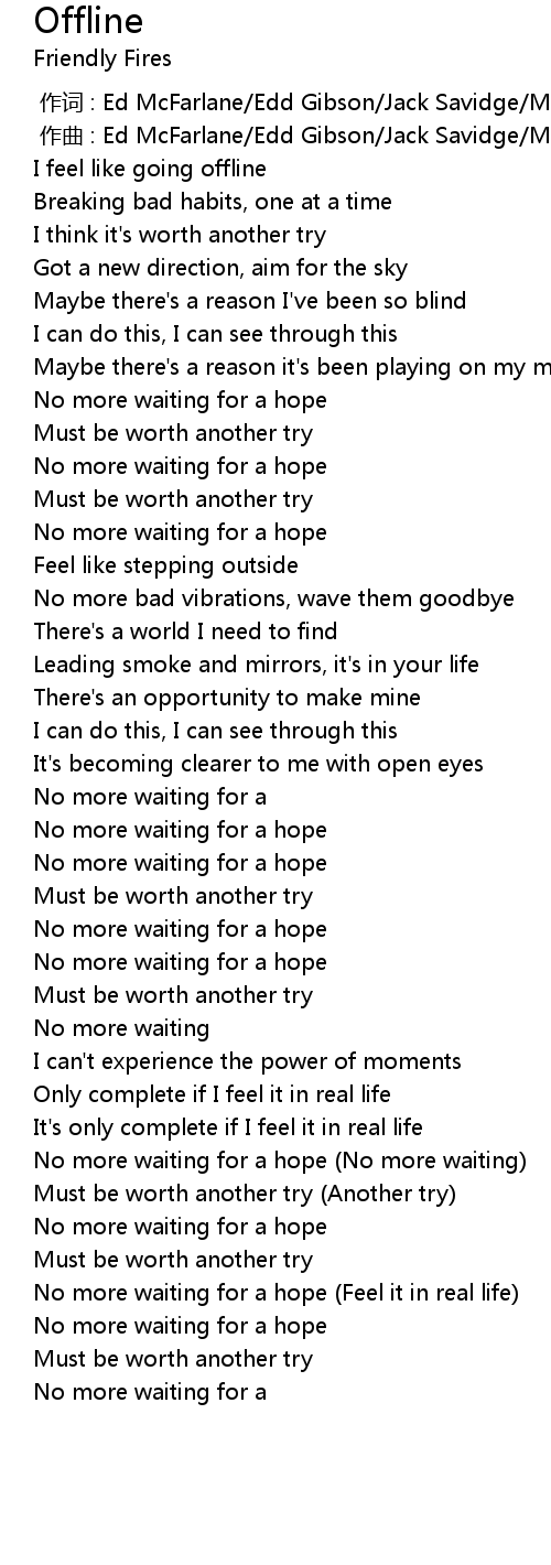 | [02:46.06] | No more waiting for a hope (Feel it in real life) |