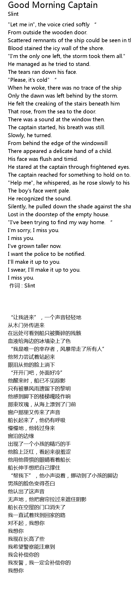 | [01:13] | " I' m the only one left, the storm took them all." |