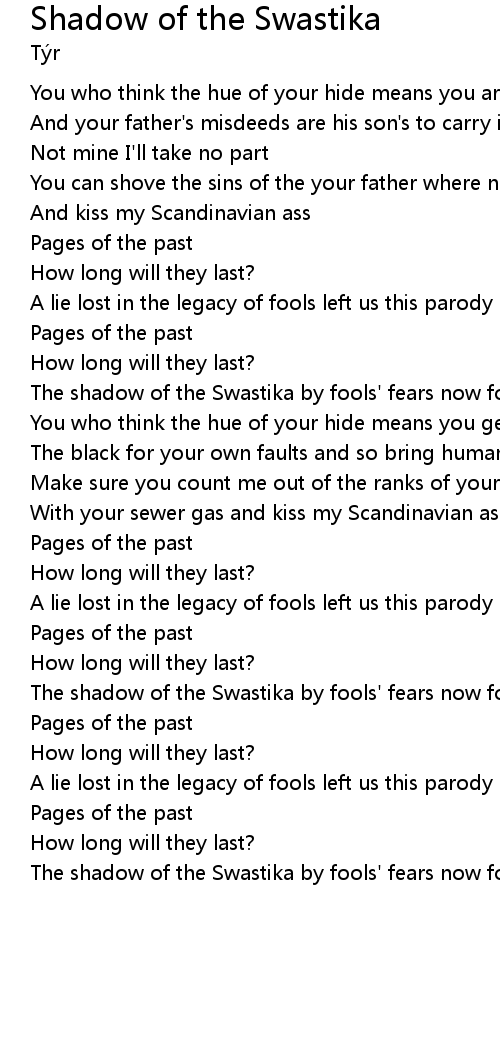 The shadow of the Swastika by fools' fears now for far too long has been cast |