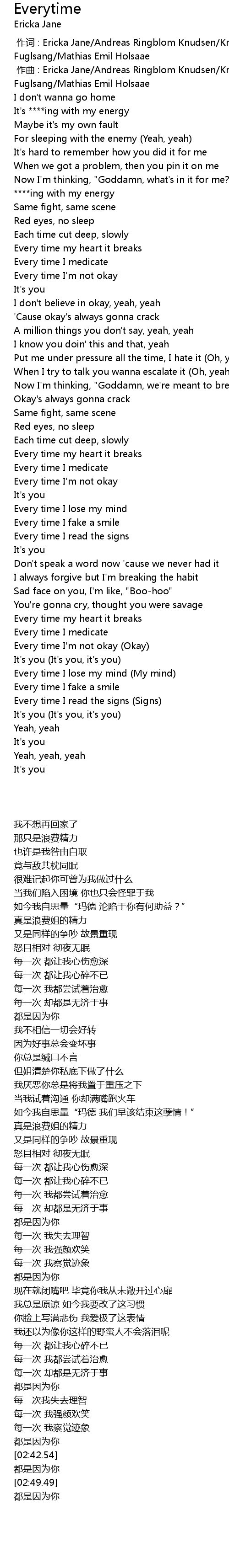 | [02:19.79] | Every time I'm not okay (Okay) |