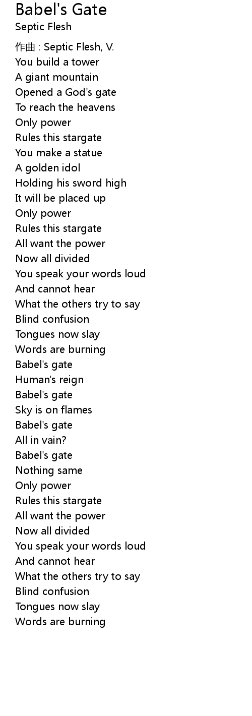 | Song | Babel's Gate |