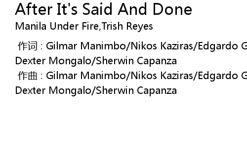 | [00:00.00-1] | zuo qu : Gilmar Manimbo Nikos Kaziras Edgardo Gabriel Gamboa Adrian Dexter Mongalo Sherwin Capanza |