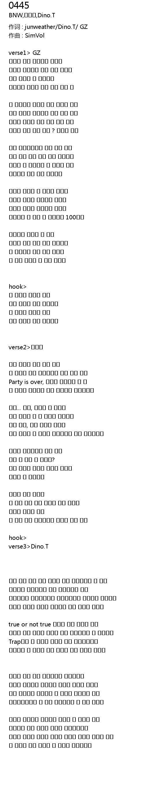 作词 : junweather/Dino.T/ GZ |