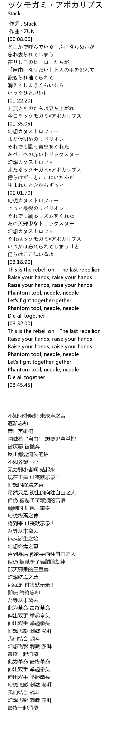 | [03:08.25] | それはツクモガミ•アポカリプス |